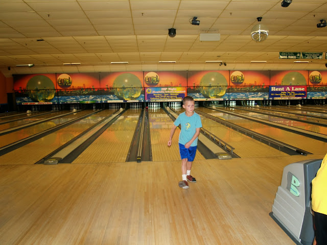 The first two games they bowled without bumpers and were not impressed with their scores, but did show improvement between games. The final game they decided to use the bumpers and it helped some. They both manages to get strikes however, without the ball touching the bumpers.