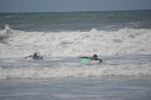 The boys and daddy got to the beach at 8:15. They were ready for a full day of surfing. We joined them about an hour later and then Auntie Linda, Uncle Joe, Aunt Kathy, Uncle Ed and Austin came for the rest of the day. We just chilled and played in the water. It was a pretty fun day. The waves were good and there was no rest for my boys. They were in the water ALL day. The boards had to be returned by 5:00 so that was the only reason they left.
