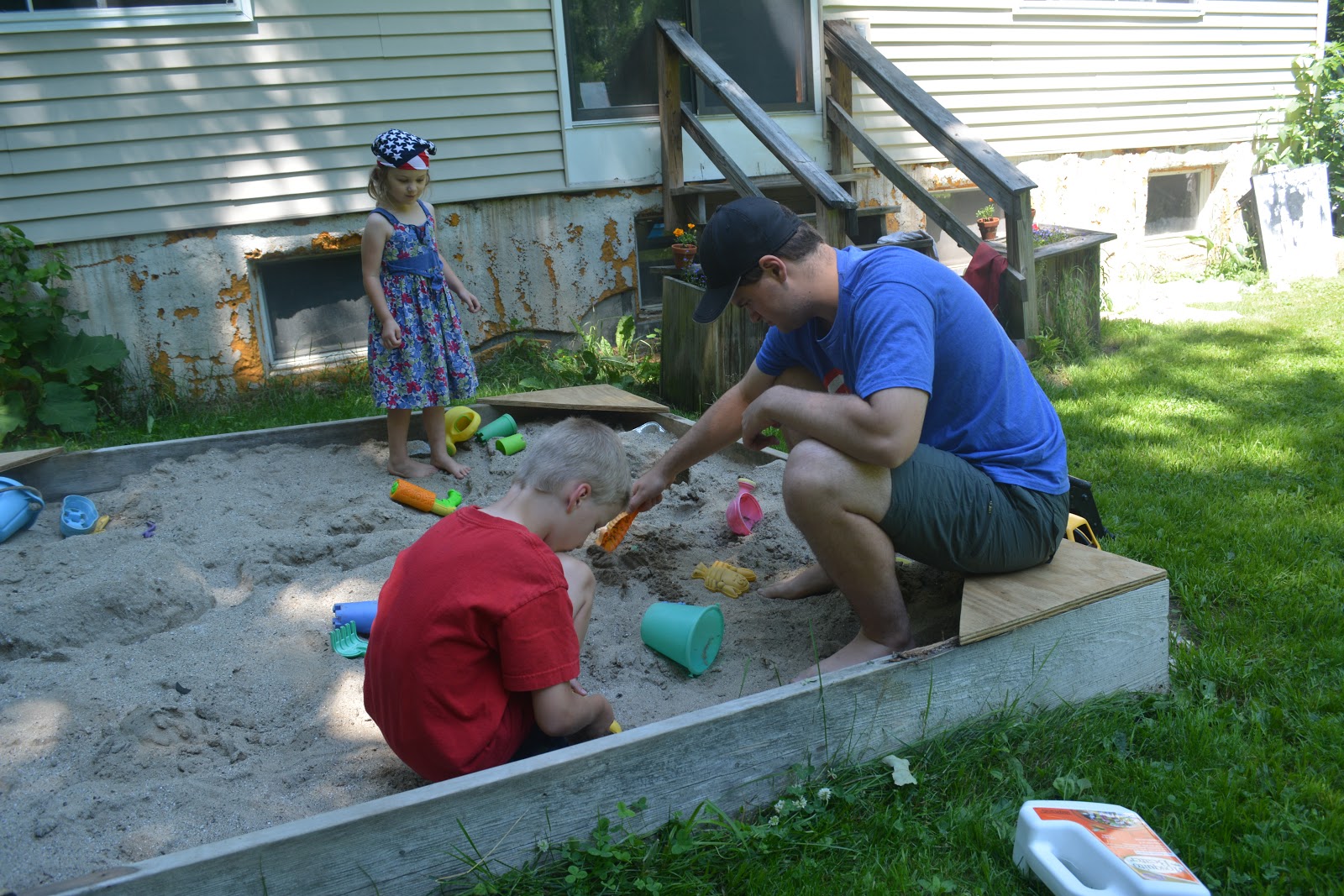 We had a great day. Eric was smoking ribs all day, while I made cornbread, coleslaw, apple pie and berry shortcake, which Issabelle got to decorate. William was on fry duty. Everything was SO yummy. The kids played outside for most of the day. There was sandbox play, as always, and a little competition of backyard golf- using whiffle balls. It was pretty a relaxing day. We didn't do the Dad firework show this year but still managed to have fun as a family.